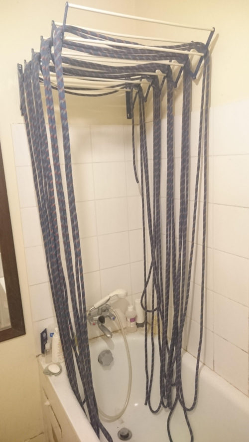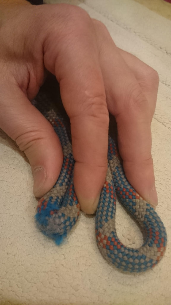 14 brins de corde contrôlés cm par cm, deux brins réparés, 3 jeux de dégaines reconstitués, un casque rebuté, quelques mousquetons jetés. Le reste a passé le test et est prêt à l’emploi.