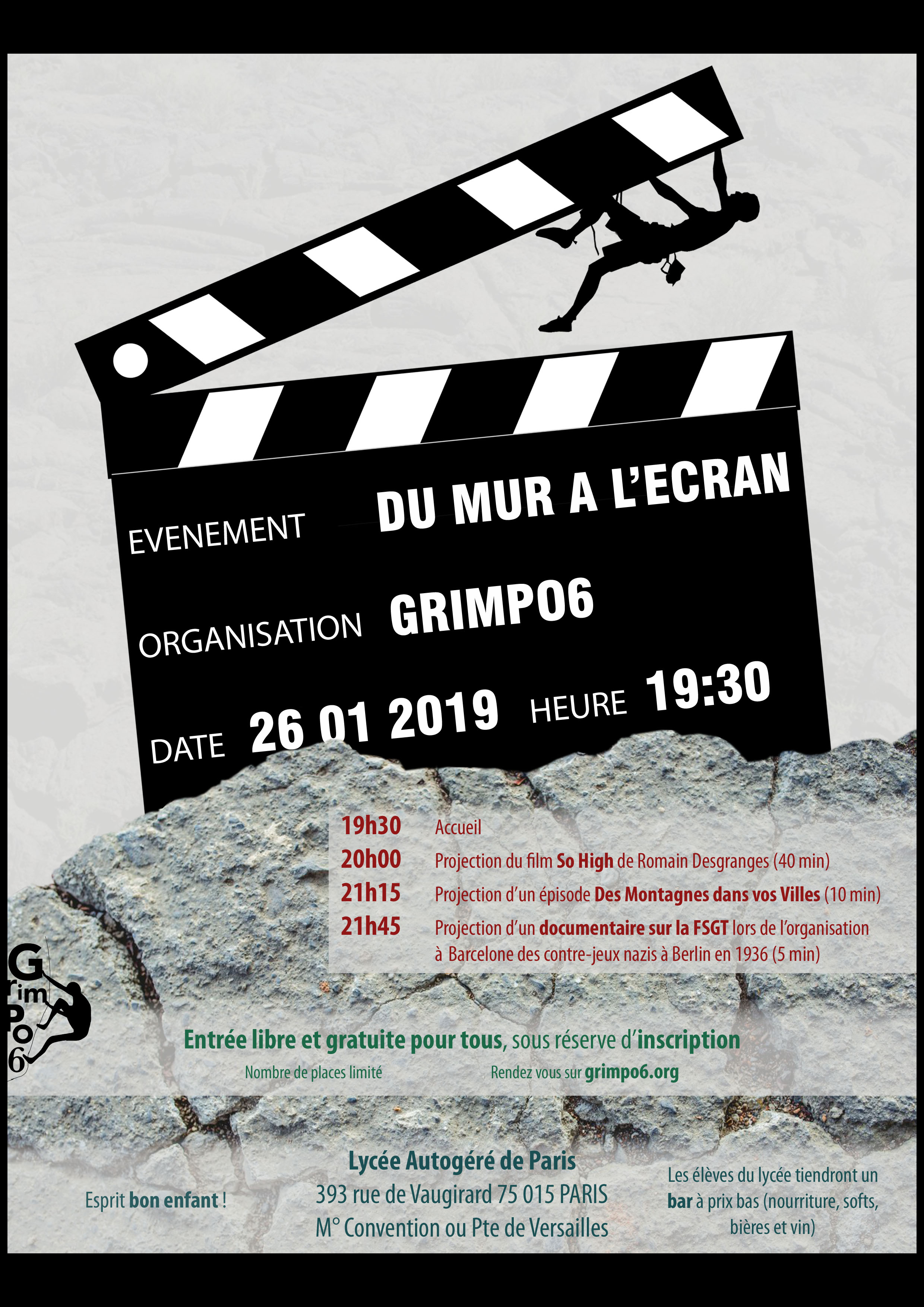Soirée escalade, film, débats et bar-buffet