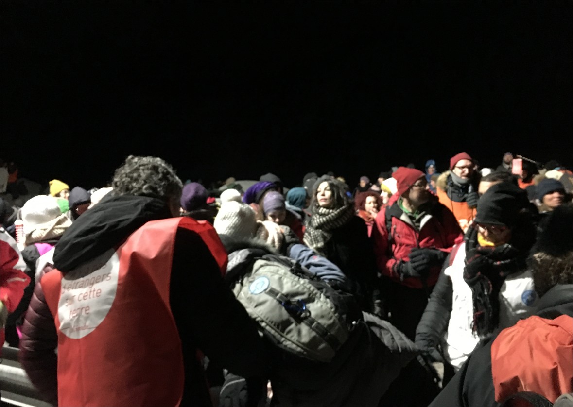 Aujourd’hui, nous avons constitué un collectif informel de personnes de la FSGT escalade Ile de France, pour participer à la « maraude géante » organisée la nuit du 15 mars à Briançon. En effet, ce qui se passe dans les montagnes nous concerne !! Soutenir les militants briançonnais, venir en nombre, et au nom d’organisations diverses (FSGT, mais il y aura aussi les Tabliers Volants, la Fanfare Invisible, la Cimade, Médecins de Monde, Amnesty !) est un geste politique fort. La chasse à l’homme dans nos montagnes ne se fera pas en toute impunité !!!!