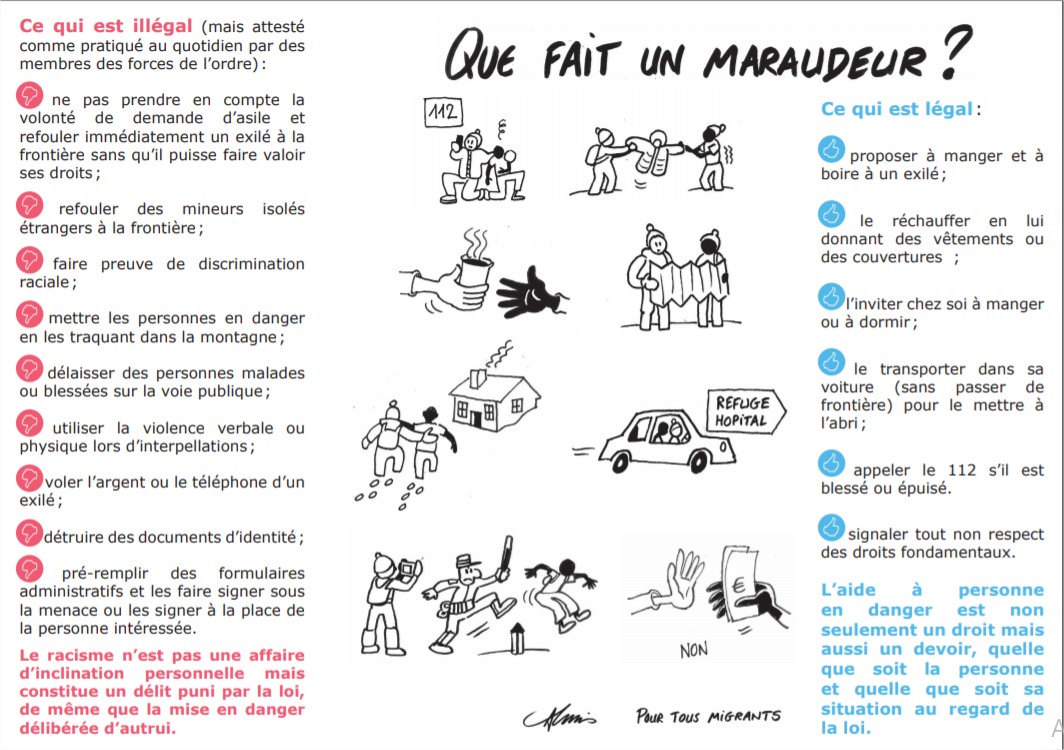 – d’empêcher la police de pourchasser et rejeter, au mépris de leurs droits, les migrant.e.s passé.e.s sur le sol Français pour demander le droit d’asile.