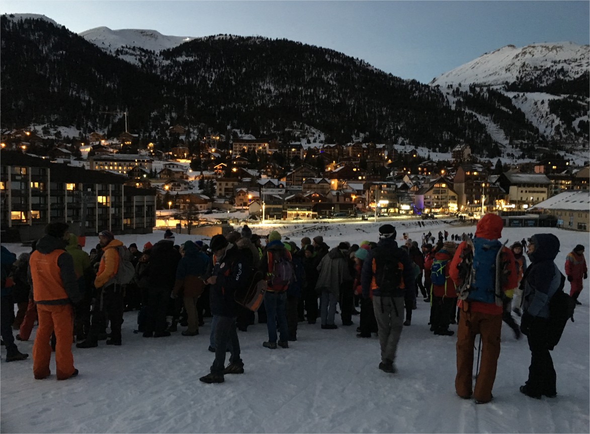 «Nos montagnes ne sont pas des cimetières», «Solidarité = délit»… ils et elles étaient 400 ce vendredi 15 mars au soir à se rassembler, dans la station de Montgenèvre, pour une «Grande maraude solidaire» à l’initiative de l’association Tous Migrants et à l’appel de la Cimade, d’Amnesty International, de Médecins du Monde… et de la FSGT avec la Fanfare Invisible et les Tabliers Volants ! Adhérent·es de clubs d’escalade franciliens en majorité, mais aussi marseillais, grenoblois, briançonnais… ils et elles étaient une cinquantaine parmi les manifestant·es. Prises de paroles, descente aux flambeaux et maraude commune organisée jusqu’aux locaux de la Police aux frontières, pour dénoncer la gravité de la situation et les droits bafoués : des personnes en situation de migration, comme de celles et ceux qui leur viennent en aide. Dans ces cas, «vous avez le droit de désobéir», a ainsi conclu le porte parole de la Ligue des Droits de l’Homme. « La cause du problème, c’est la répression qui pousse à se mettre en danger dans les montagnes, ici, hors des chemins sécurisés », alertent des participants FSGT… ».
