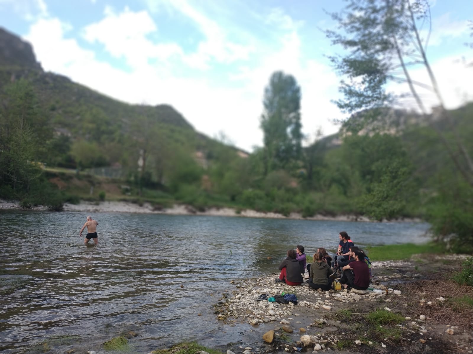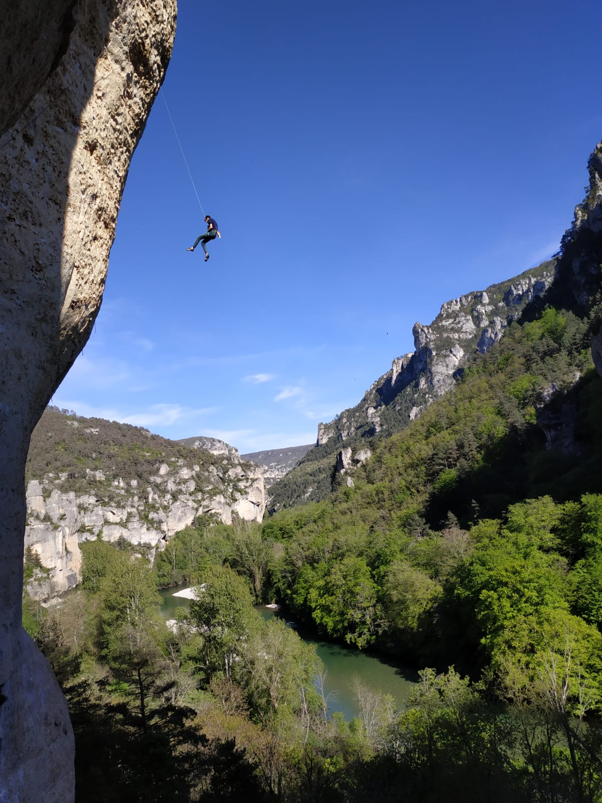 Plein de superbes grandes couennes dont un 8a pour Vivien ! Le Tarn est démentiel.