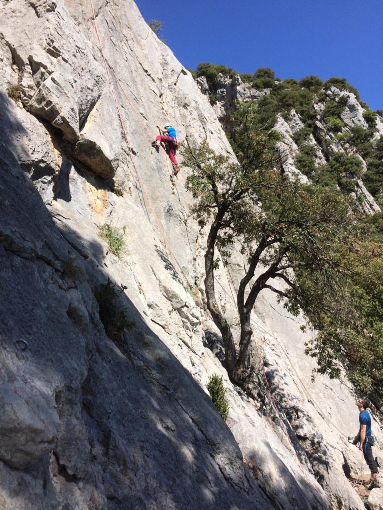 Les jours passent, les cordées se forment chaque soir au moment du repas et enchainent le lendemain les grandes voies au Saint-Julien et les couennes, de Baume noire à Ubrieux. Le soleil sera de la partie tous les jours, nous obligeant parfois à adapter les horaires de grimpe histoire ne pas virer écrevisse avant la fin de la journée.