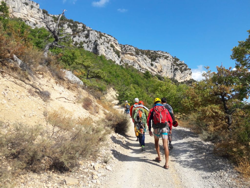 A peine arrivés, les cordées se préparent et s’éparpillent sur les différents sites : un groupe prend la direction du Saint Julien pour faire des grandes voies, tandis que d’autres iront se faire les dents sur les couennes de Baume Rousse.