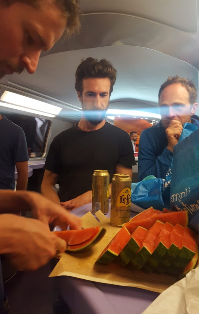 Jeudi 5 septembre. 19h et quelque, les grimpeurs arrivent les uns après les autres à Gare de Lyon, enthousiastes à l’idée d’affronter les falaises 4 jours durant. L’heure tourne, chacun monte dans le train et regagne sagement la place indiquée sur son billet. Au démarrage du train, le groupe éparpillé entre deux wagons fait le bilan. Nous sommes 9, au lieu de 10, une personne manque à l’appel. Interrogation, échange de SMS, le grimpeur étourdi est identifié, contacté et la logistique pour le récupérer le lendemain se met en place.