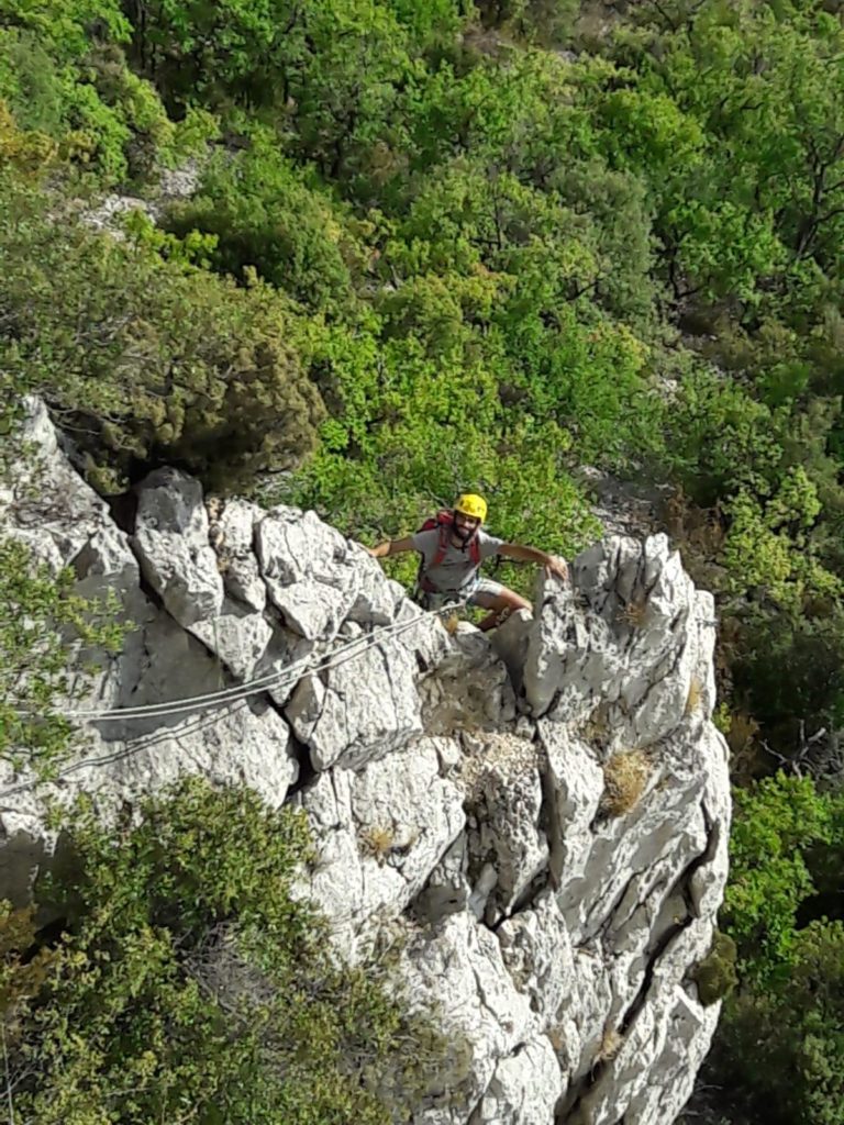 Arrivée à la gare de Lyon Saint Exupéry où nous récupérons les deux grimpeurs marseillais du groupe. Le temps de récupérer les voitures de locations et nous prenons la route du sud à défaut de celle de Chamonix. La météo n’étant pas clémente ce week-end en montagne, nous avons troqué les Aiguilles rouges contre le Saint Julien et sa crête de dinosaure, à Buis-les-Baronnies.