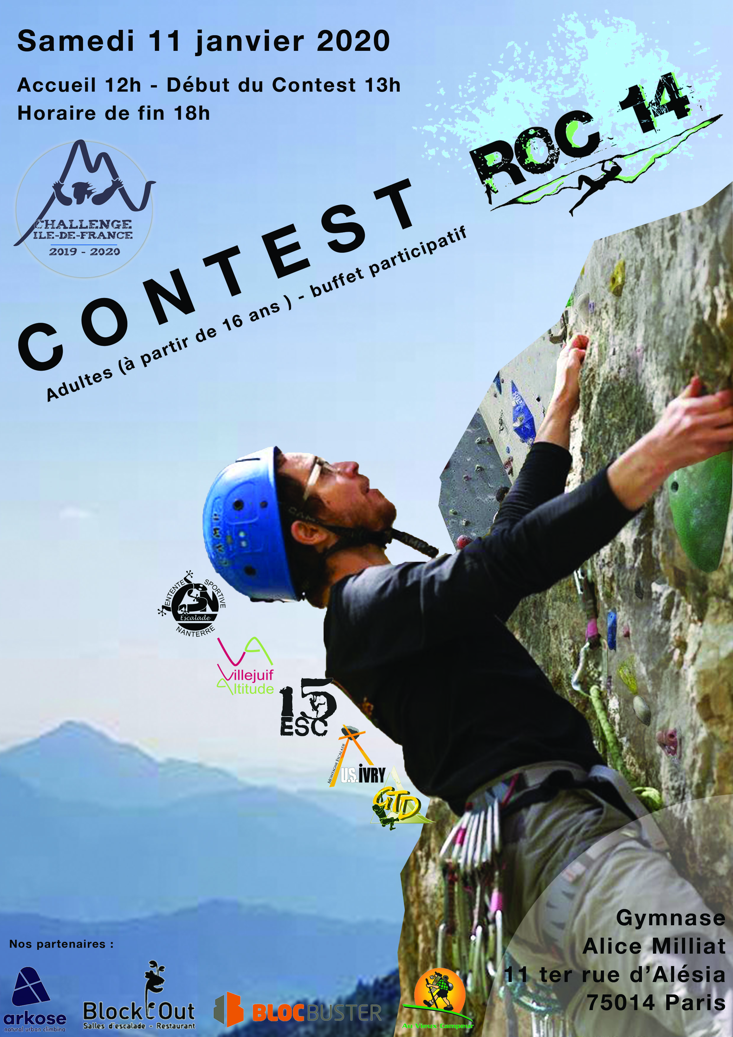 Ce Challenge FSGT Régional 2019-2020 est organisé par 6 Clubs : GTD, ESC15, US Ivry, Villejuif altitude, Nanterre grimpe , et Roc14.