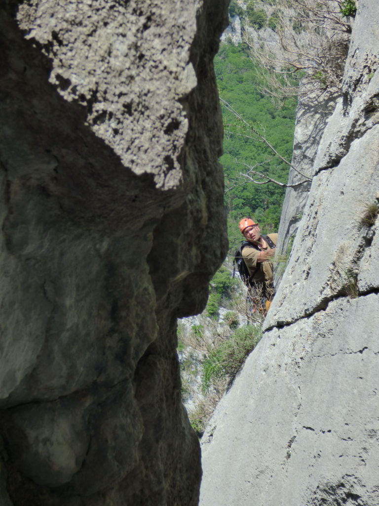 Le 1er jour, les 250 mètres de la paroi de l’Escalès s’offrent à nous. Le Jardin des écureuils permet de s’adapter au rocher en douceur (!) avec des grandes voies belles et abordables. Et pour ceux qui en redemandent, des couennes moulinées depuis le haut de la falaise les attendent au soleil.