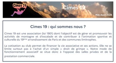 Cliquez sur ce lien pour accéder au compte rendu : https://forum.montagne-escalade-fsgt.org/t/collectif-d-animation-de-cimes-19-mardi-24-juin-2025-le-compte-rendu/4751 Rdv donc aux Buttes-Chaumont à 19h sur … Lire la suite